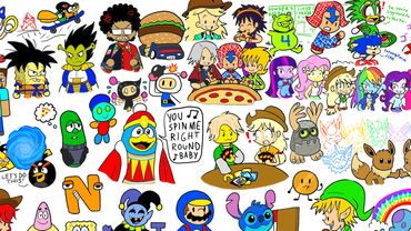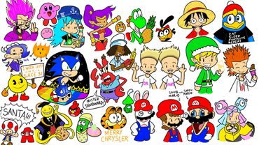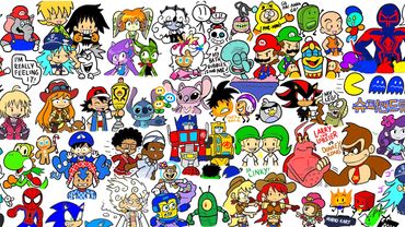 A colorful batch of red, orange, yellow, green, cyan, blue, purple, and pink characters!